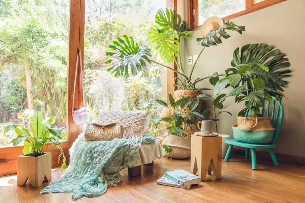 Otro aspecto importante del estilo boho es la presencia de plantas. Las macetas colgantes, las plantas suculentas o las enredaderas aportan un toque natural y fresco a la decoración, creando un ambiente más conectado con la naturaleza.