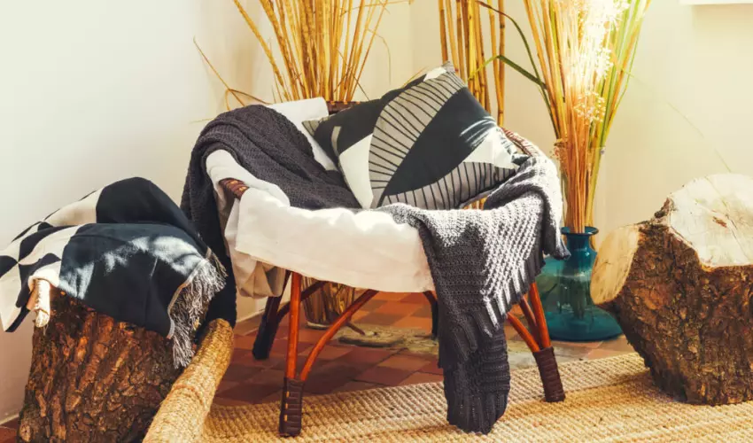 Hay asientos complementarios, como un pequeño sofá y uno o dos sillones o sillas, también podrías agregarle uso cuantos puffs o banquetas. Permitiendo un poco de fantasía en este punto, uno o más de estos muebles son lo que los estadounidenses llaman «piezas de declaración» que inmediatamente llaman la atención y hacen que la habitación sea genérica.