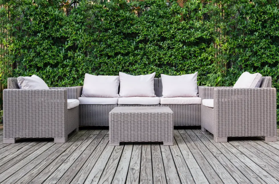 Los muebles de fibra sintética son resistentes al agua y al sol, pero también requieren ciertos cuidados. Limpia regularmente la superficie de los muebles con un paño húmedo o un cepillo suave para eliminar el polvo y los residuos. Si los muebles tienen cojines, asegúrate de lavarlos siguiendo las instrucciones del fabricante para mantener su apariencia y comodidad.