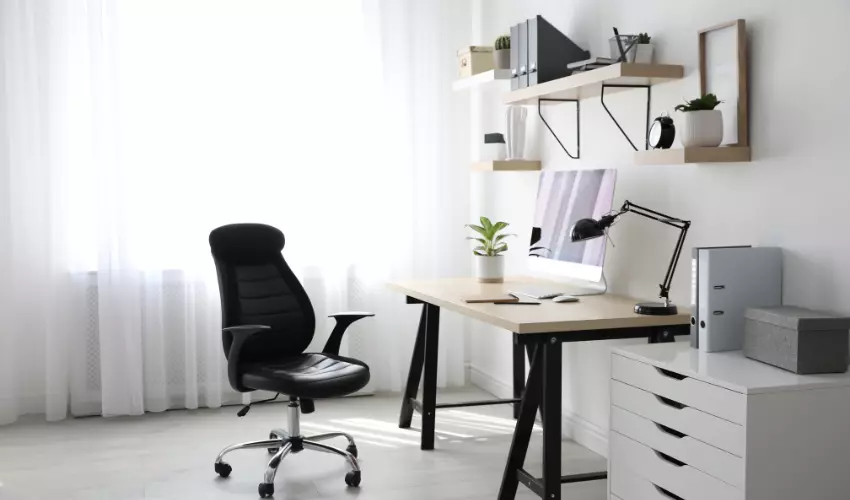 Nuestra silla universal necesita tener ruedas para poder movilizarnos en todo el escritorio, así no forzaremos estiramientos o arrastraremos la silla. La altura de nuestra silla tiene que ser regulable para que los pies no queden colgando y las rodillas un poco más bajas que las caderas. La medida que queremos obtener con esta posición es de 90° x 90°.