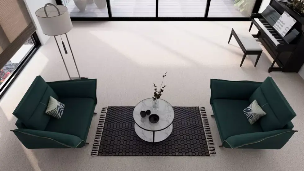 La textura de la alfombra es otro factor a considerar. Cada tipo de textura ofrece diferentes sensaciones y aspectos visuales. Por ejemplo, una alfombra tejida de color beige puede brindar un estilo boho, mientras que una de pelo largo y satinado puede darle a la sala un aspecto elegante y moderno. La elección de la textura debe estar en línea con el estilo general de la decoración y las preferencias personales.