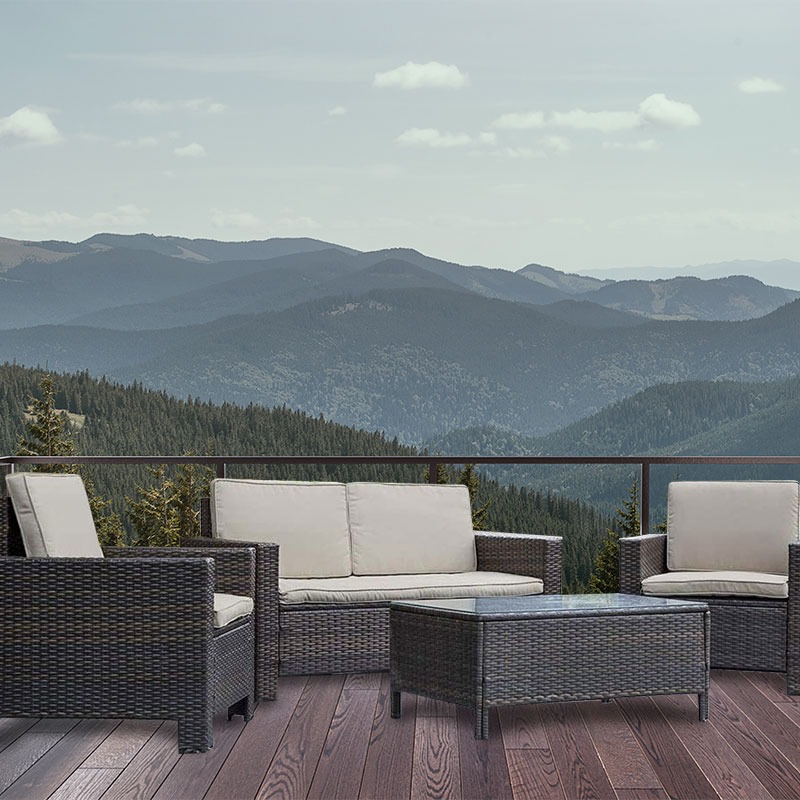 Este sobrio juego de muebles combina perfectamente con un ambiente montañoso. Imagina tener este juego en esa linda y espaciosa terraza con gran vista a las montañas que oxigenan y purifican tu hogar.