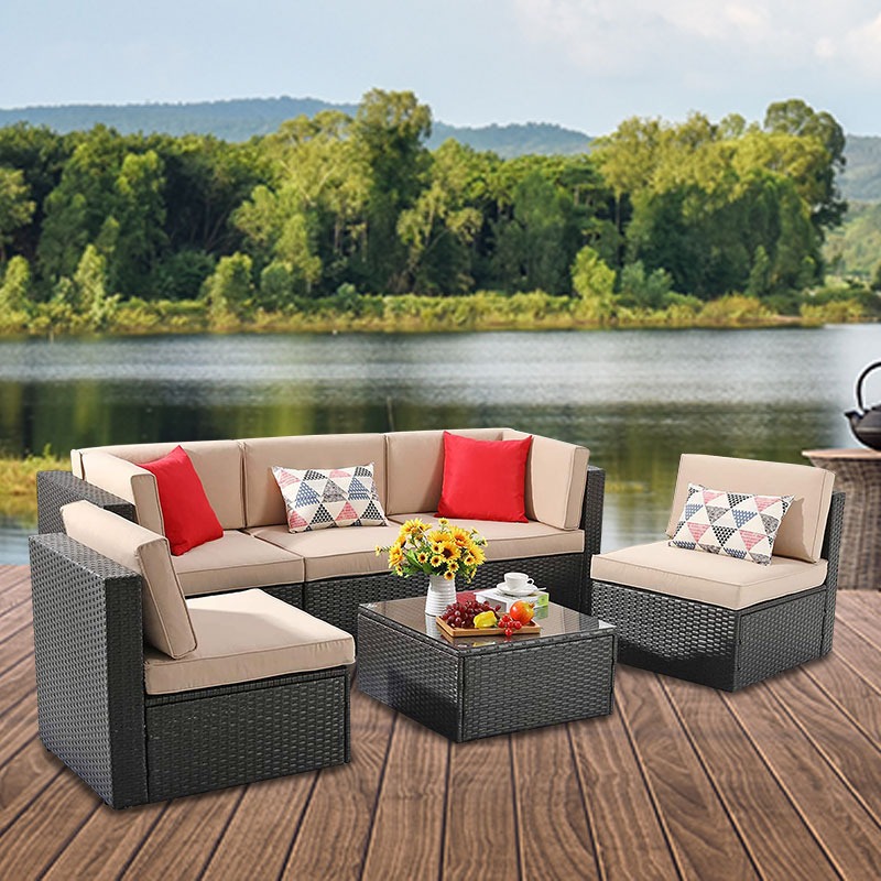 Este cálido juego seccional es ideal para espacios cerca de la playa o que tengan un jardín grande, con mucha variedad en plantas. Estos muebles de rattan sintético hacen que tu espacio exterior resalte. Pide el diseño y el color de tus cojines que mejor se ajuste a tu personalidad.