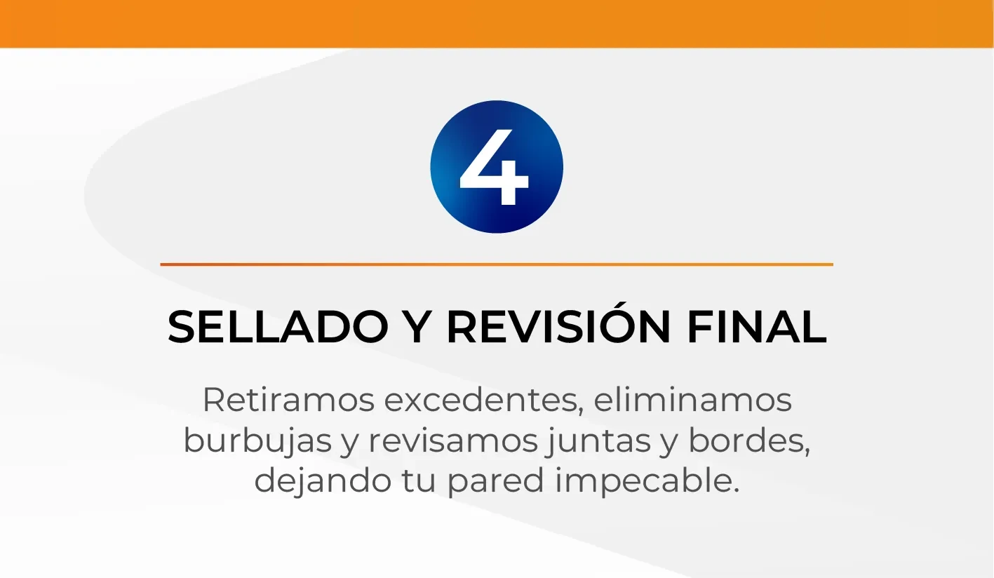 Diagnóstico de Paredes: Antes de instalar, nuestros técnicos evalúan la humedad, porosidad y nivelación del muro para aplicar el imprimante o sellador adecuado.