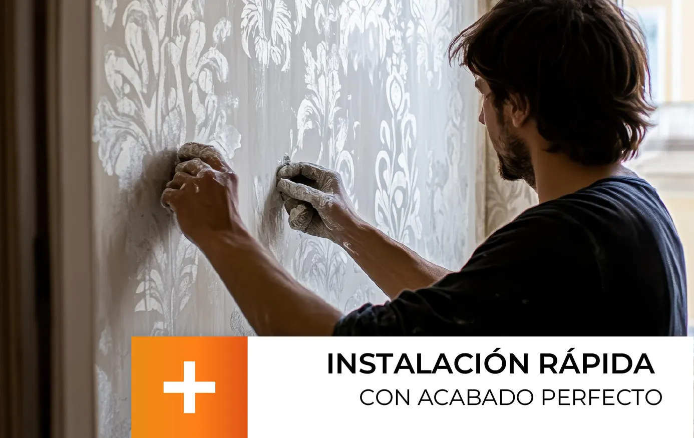 Dominio de Materiales: Experiencia comprobada instalando papel vinílico, base TNT (tejido no tejido), fibras naturales, tela y fotomurales panorámicos.